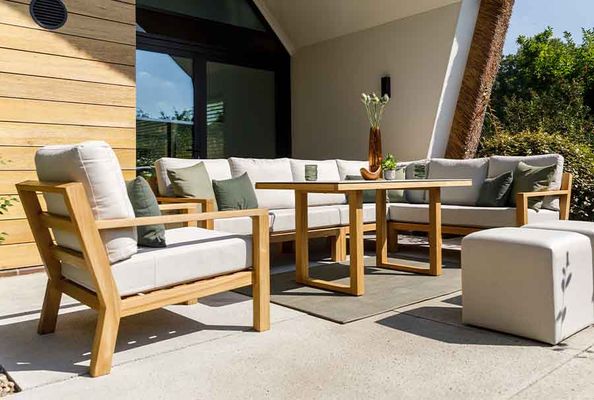 Stel je loungeset helemaal zelf samen. Meer zitplek, minder ruimte of extra gemak? Met onze modulaire elementen pas je alles eenvoudig aan jouw buitenruimte aan.